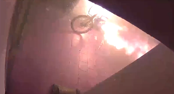 “Never store the vehicle by your front door, in a hallway, or on any escape route. We’ve seen the devastating consequences of what can happen when an exit is blocked by an e-bike fire. Instead, keep it in a room where you can shut a door, contain the fire and call 999.