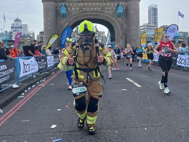 Firefighter Hannah Weatherley from Wembley Fire Station also ran in her full fire service kit. She too was taking part for the Fire Fighters Charity raising almost £3,000. She completed the London Landmarks Half marathon as part of her training. Holloway’s Blue Watch Leading Firefighter Jack Willson ran the 26.2 miles as part of his 40th birthday bucket list. He was raising funds for the Fire Fighters Charity too and aimed to finish the race in under four hours. On completing the race, Jack said: “The experience was amazing. The amount of people supporting from the sidelines really helped from start to finish. I completed it in 4hrs 5 mins which I was pleased with. Thanks to everyone who donated, I’ve raised £1,245.”
