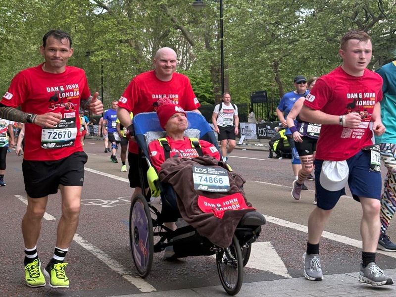 The pair have been attempting to do the marathon for several years but only secured a spot this year. Sadly, John’s mobility has become restricted in the interim period, and he now uses a wheelchair. The assisted wheelchair the duo used is the same one that rugby league players Kevin Sinfield and the late Rob Burrows had for the Leeds Marathon in 2024. Dan was pleased to finally have the opportunity to participate, it made him even more determined to succeed.